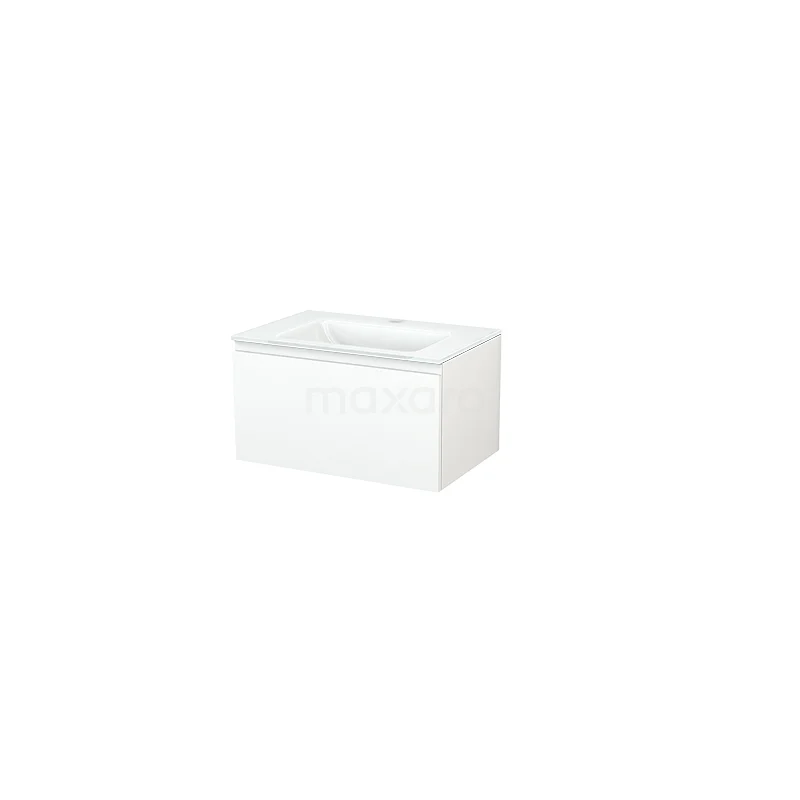 Modulo+ Bathroom furniture with sink | 70 cm Matte white Handle-less front Glass 1 drawer
