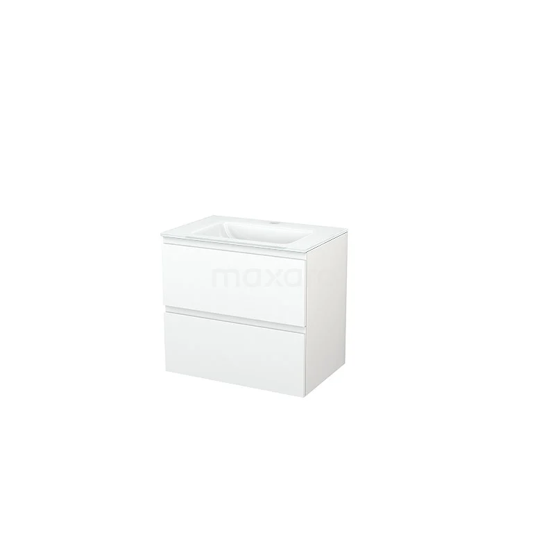 Modulo+ Bathroom furniture with sink | 70 cm Matte white Handle-less front Glass 2 Stacked drawers