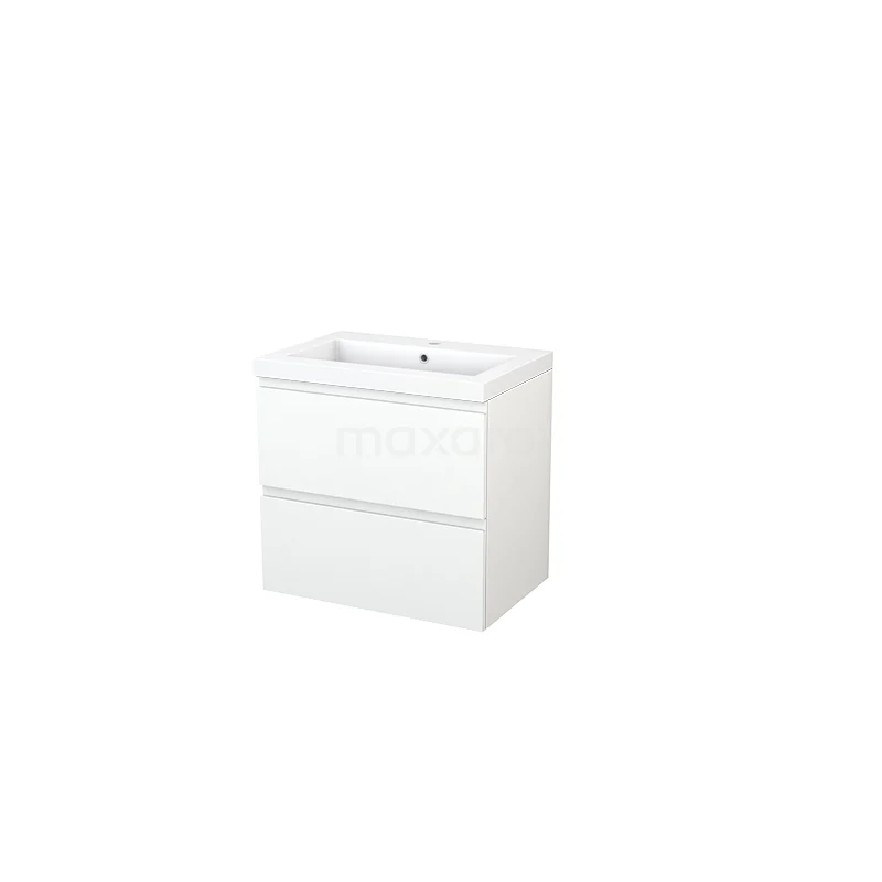 Modulo+ Bathroom furniture with sink | 70 cm Matte white Handle-less front Mineral marble 2 Stacked drawers