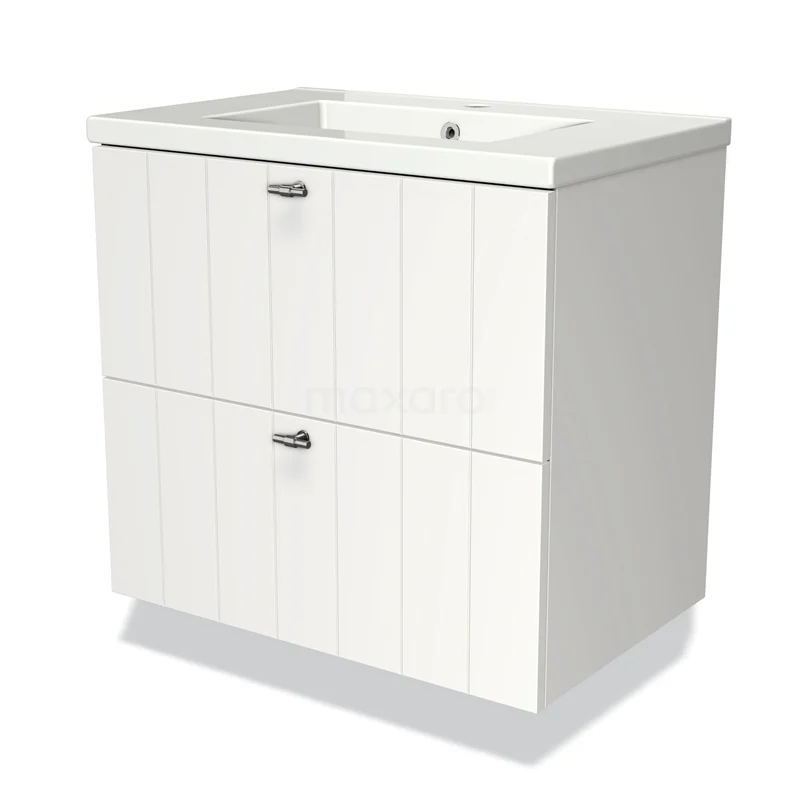 Modulo Bathroom furniture with sink | 70 cm Matte white Slat front Ceramic 2 Stacked drawers