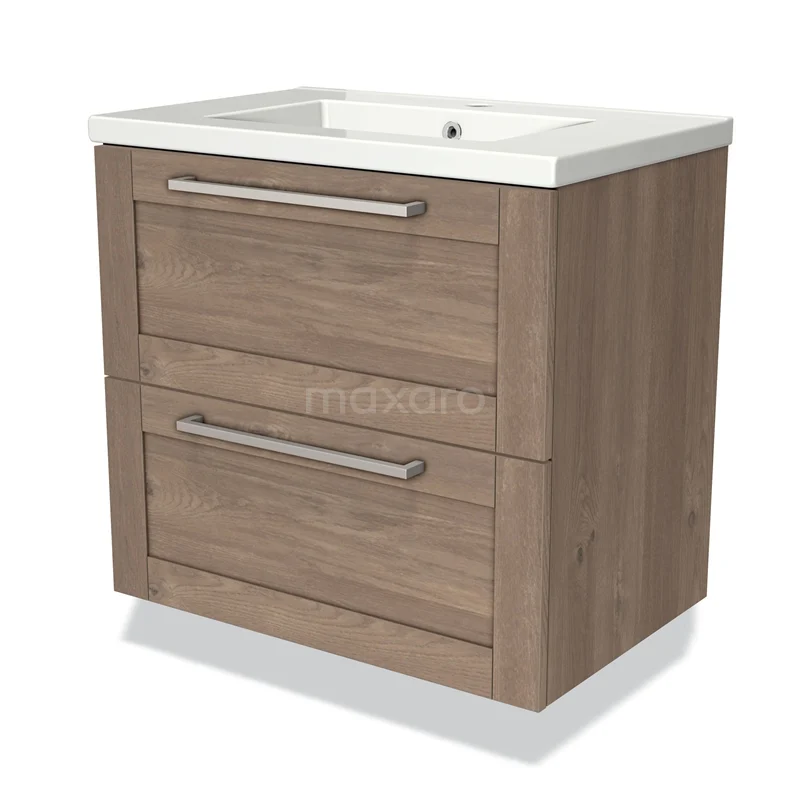Modulo Bathroom furniture with sink | 70 cm Mid brown oak Frame front Ceramic 2 Stacked drawers