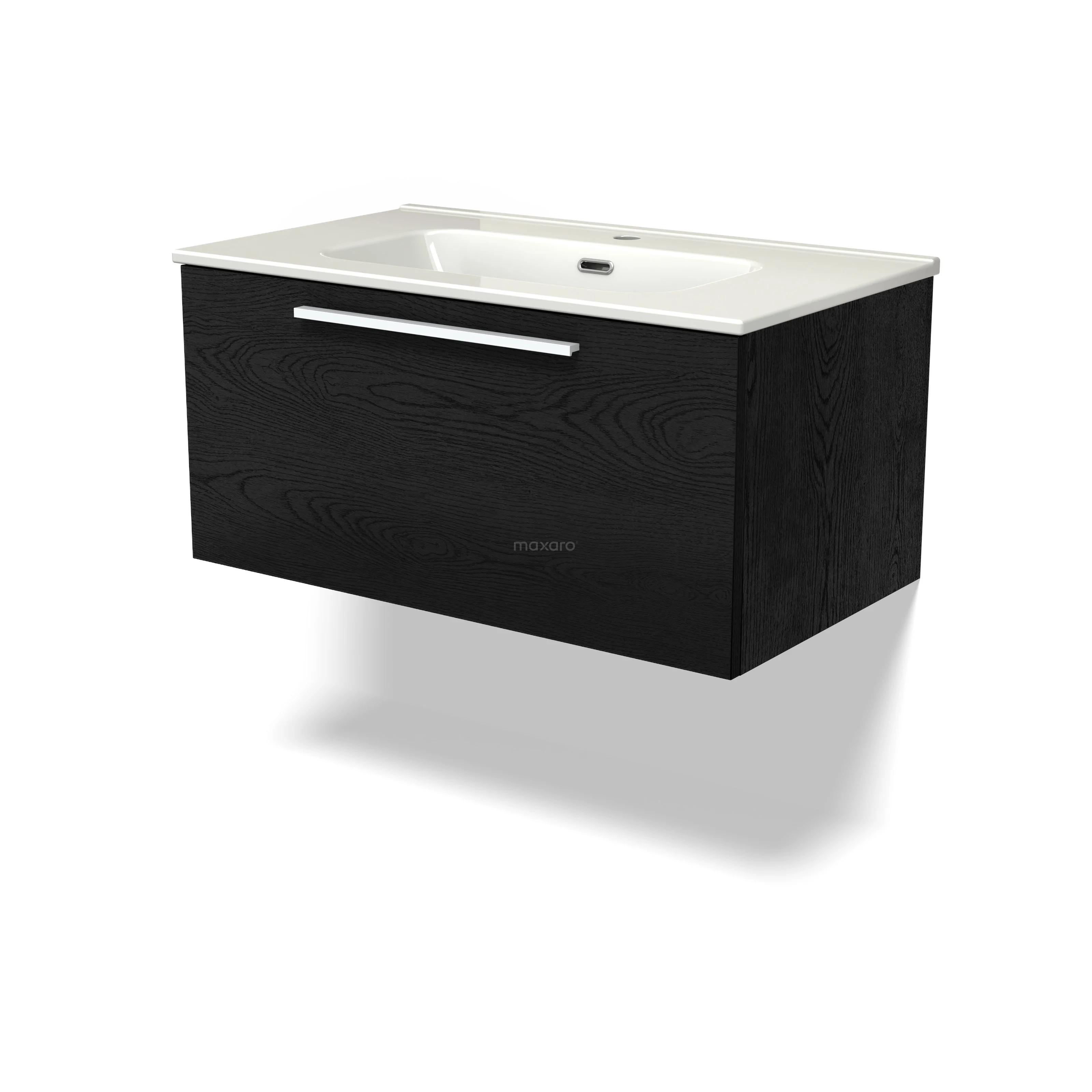 Modulo Bathroom furniture with sink | 80 cm Black oak Flat front Ceramic 1 drawer