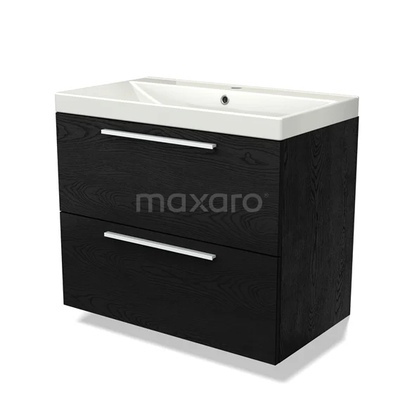 Modulo Bathroom furniture with sink | 80 cm Black oak Flat front Ceramic 2 Stacked drawers