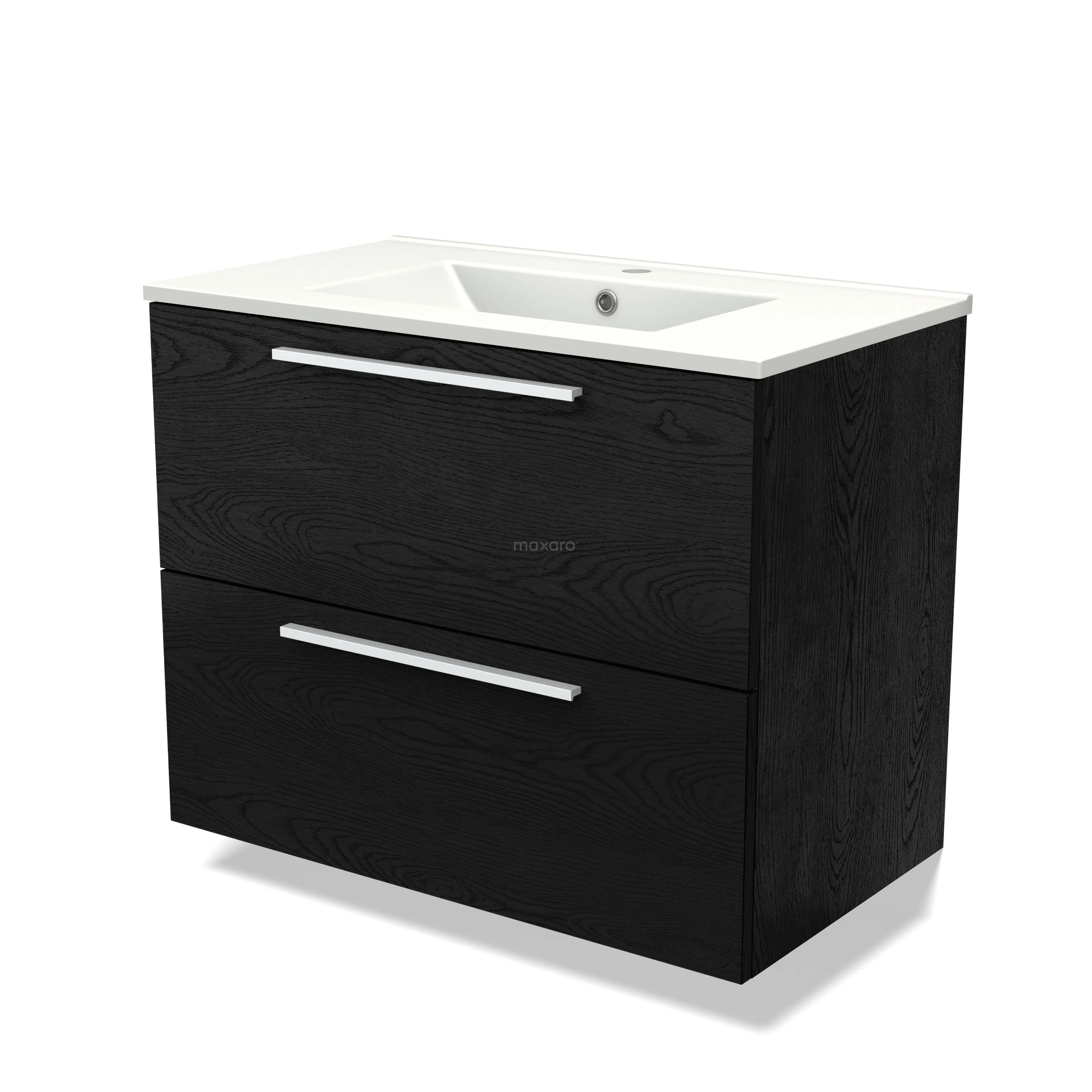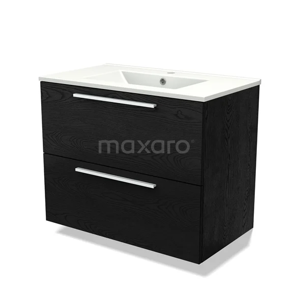 Modulo Bathroom furniture with sink | 80 cm Black oak Flat front Ceramic 2 Stacked drawers