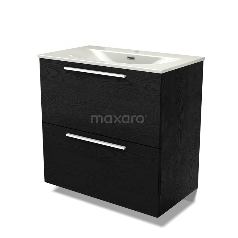 Modulo Bathroom furniture with sink | 80 cm Black oak Flat front Ceramic 2 stacked drawers under each other