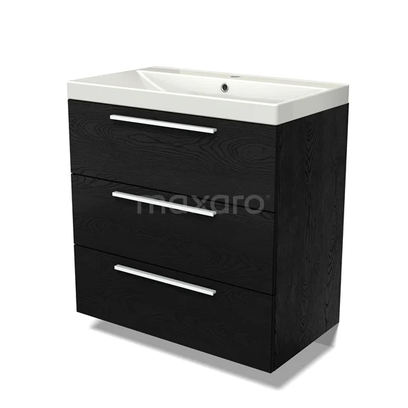 Modulo Bathroom furniture with sink | 80 cm Black oak Flat front Ceramic 3 drawers