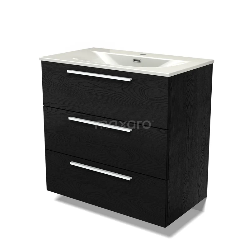 Modulo Bathroom furniture with sink | 80 cm Black oak Flat front Ceramic 3 drawers