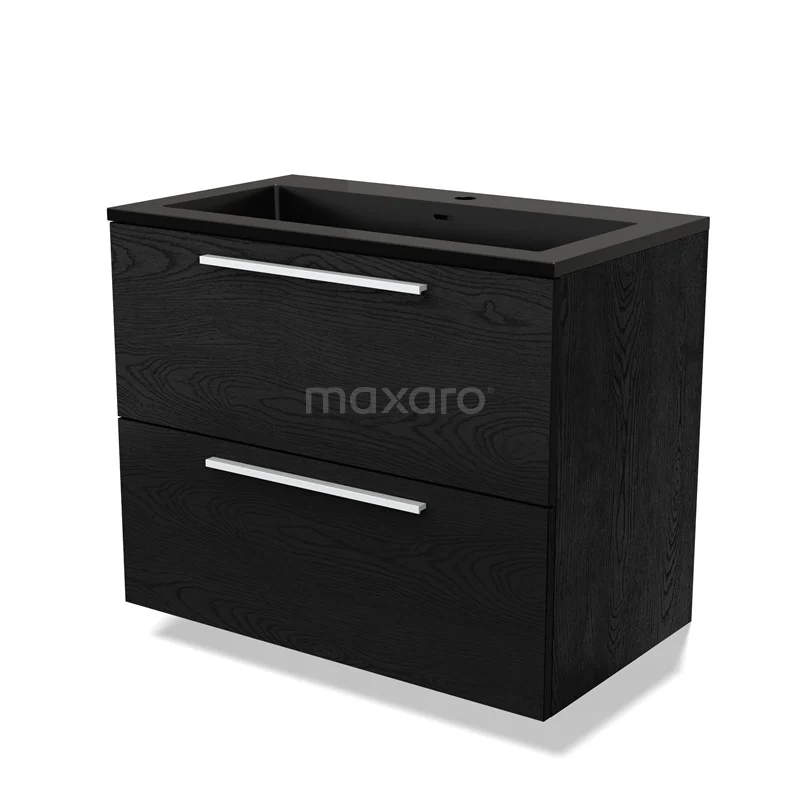 Modulo Bathroom furniture with sink | 80 cm Black oak Flat front Quartz 2 Stacked drawers