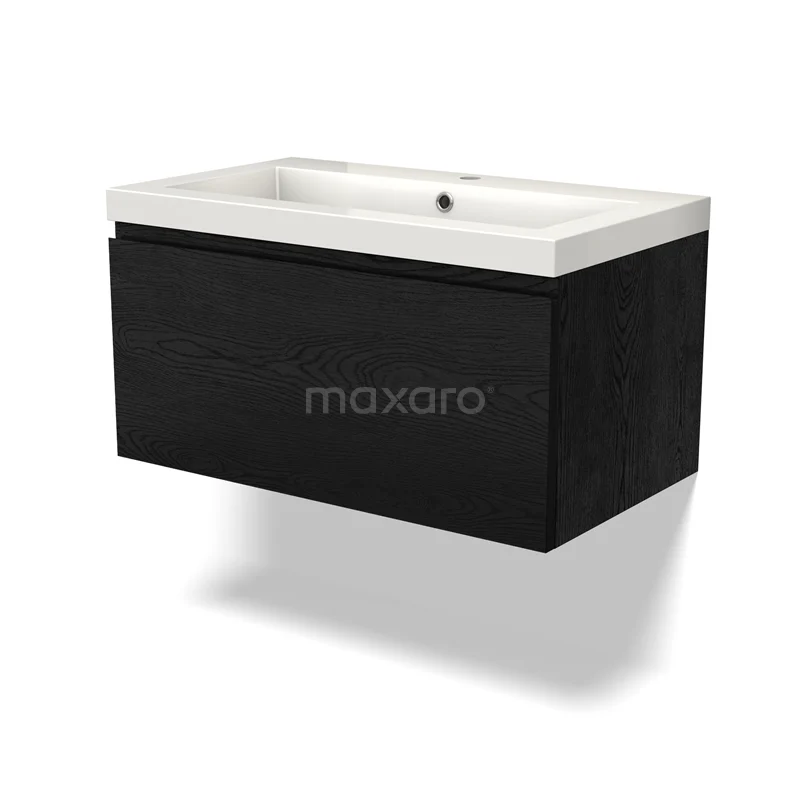 Modulo Bathroom furniture with sink | 80 cm Black oak Handle-less front Mineral marble 1 drawer
