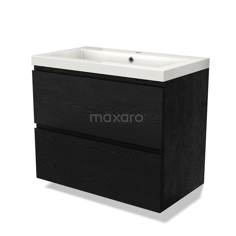 Modulo Bathroom furniture with sink | 80 cm Black oak Handle-less front Mineral marble 2 Stacked drawers