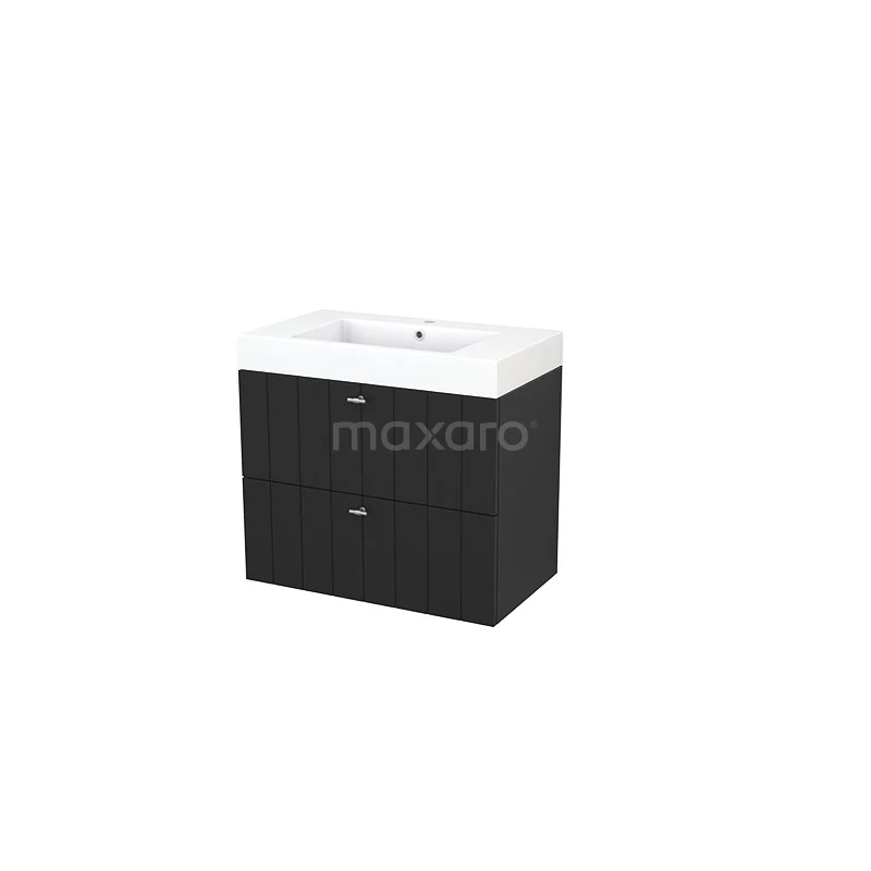 Modulo+ Bathroom furniture with sink | 80 cm Carbon Slat front Mineral marble 2 Stacked drawers