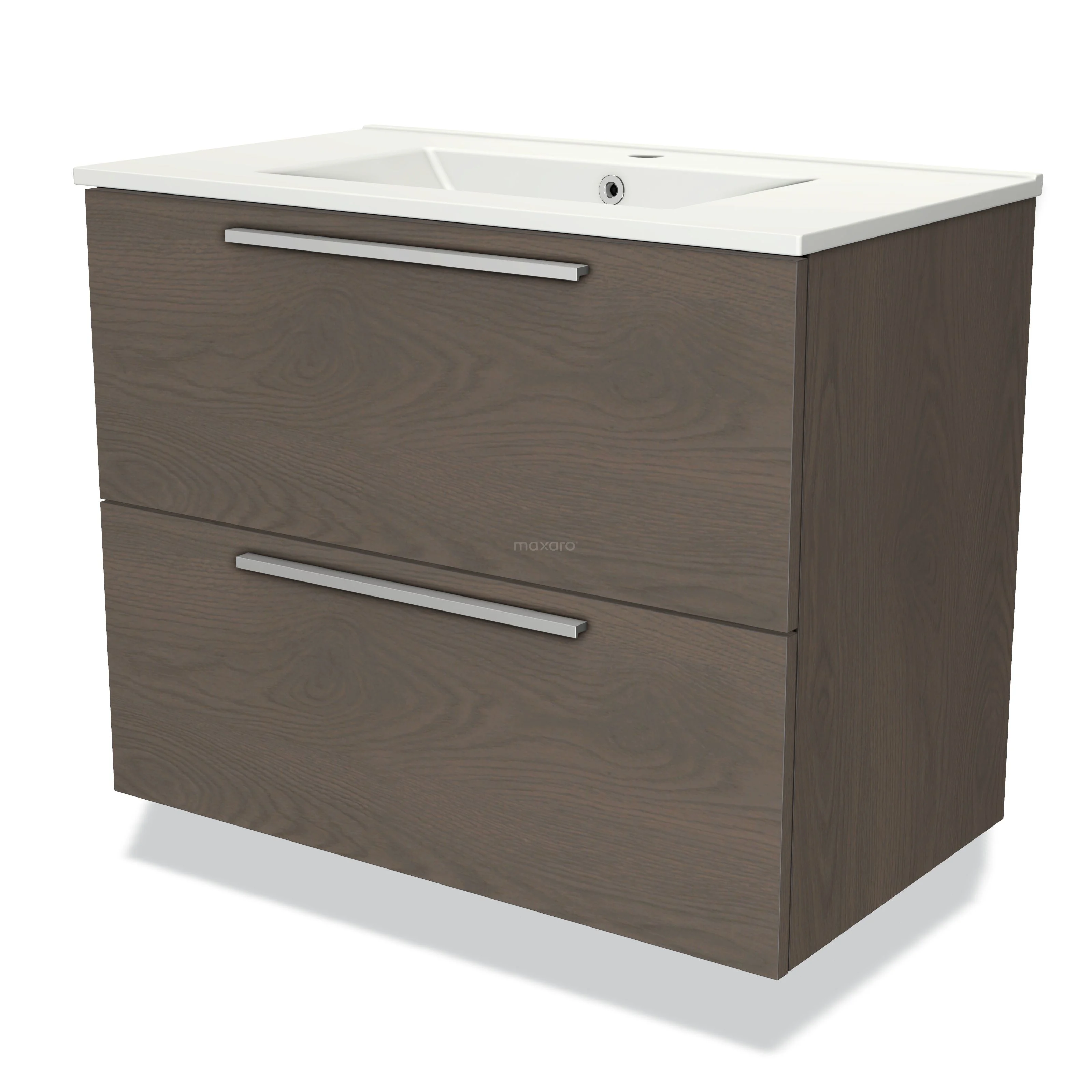Modulo Bathroom furniture with sink | 80 cm Dark brown oak Flat front Ceramic 2 Stacked drawers