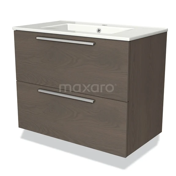 Modulo Bathroom furniture with sink | 80 cm Dark brown oak Flat front Ceramic 2 Stacked drawers