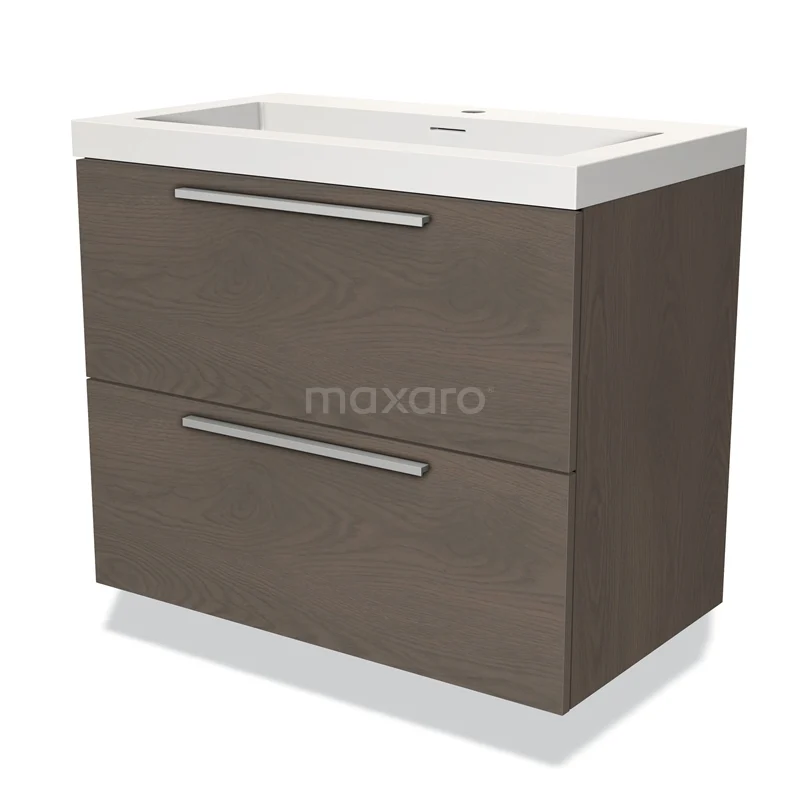 Modulo Bathroom furniture with sink | 80 cm Dark brown oak Flat front Solid surface 2 Stacked drawers