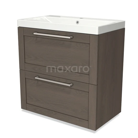 Modulo Bathroom furniture with sink | 80 cm Dark brown oak Frame front Ceramic 2 stacked drawers under each other