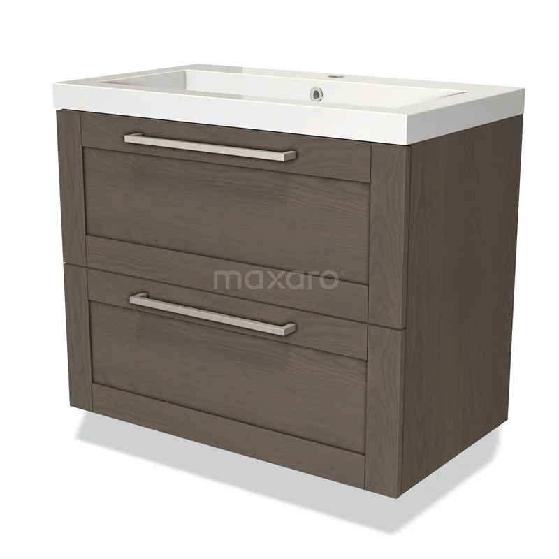 Modulo Bathroom furniture with sink | 80 cm Dark brown oak Frame front Mineral marble 2 Stacked drawers