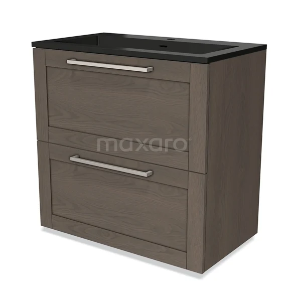 Modulo Bathroom furniture with sink | 80 cm Dark brown oak Frame front Quartz 2 stacked drawers under each other