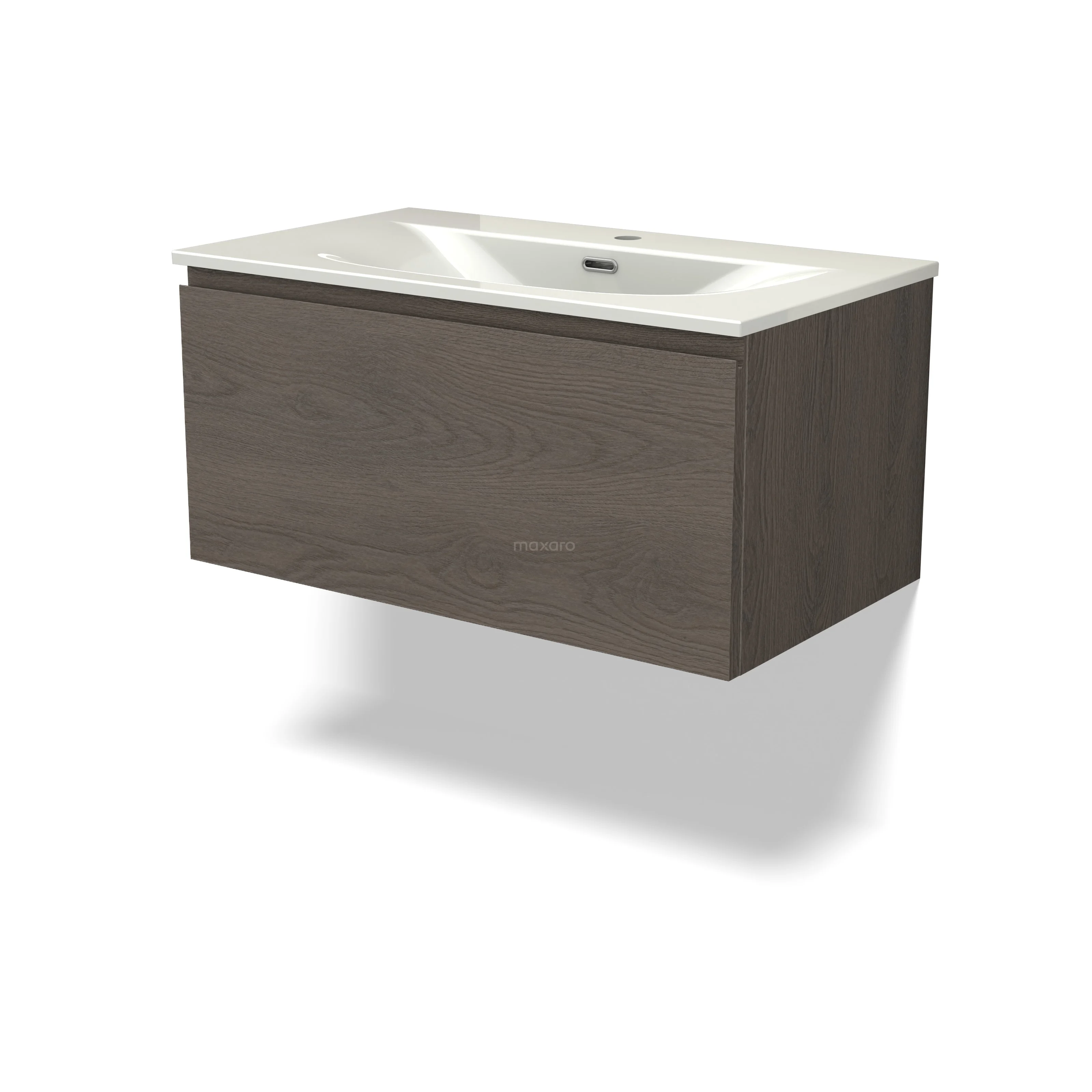 Modulo Bathroom furniture with sink | 80 cm Dark brown oak Handle-less front Ceramic 1 drawer