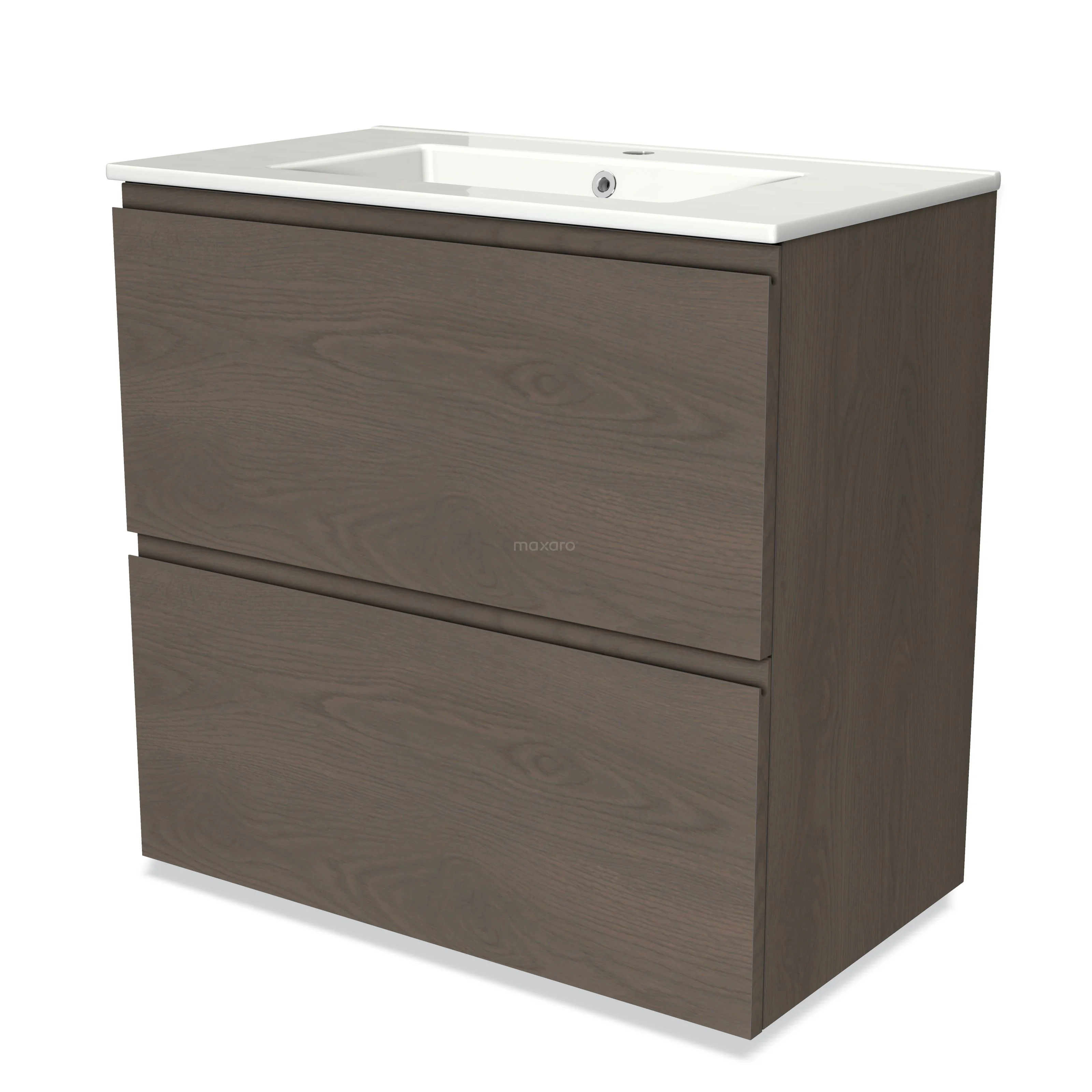 Modulo Bathroom furniture with sink | 80 cm Dark brown oak Handle-less front Ceramic 2 stacked drawers under each other