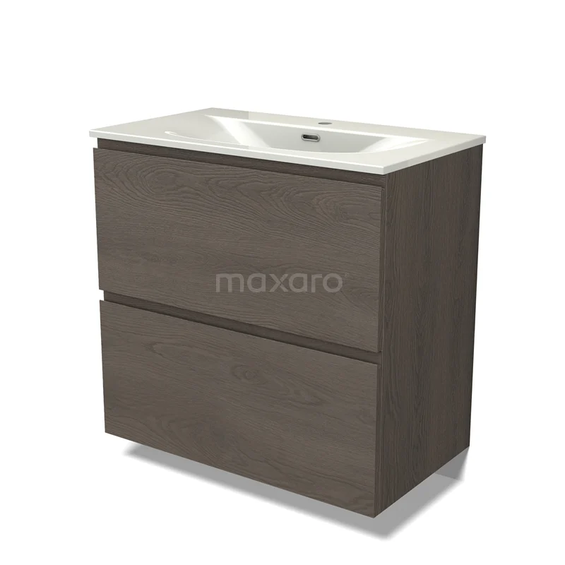 Modulo Bathroom furniture with sink | 80 cm Dark brown oak Handle-less front Ceramic 2 stacked drawers under each other