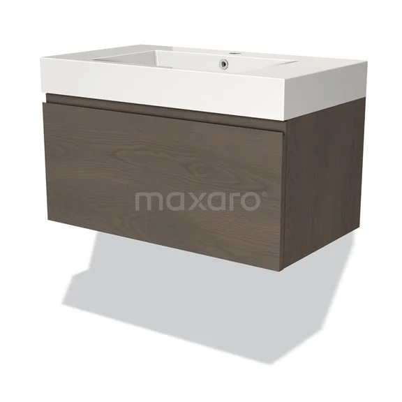 Modulo Bathroom furniture with sink | 80 cm Dark brown oak Handle-less front Mineral marble 1 drawer