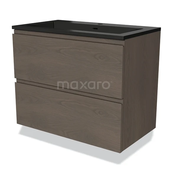 Modulo Bathroom furniture with sink | 80 cm Dark brown oak Handle-less front Quartz 2 Stacked drawers
