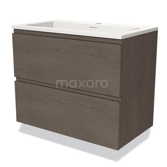 Modulo Bathroom furniture with sink | 80 cm Dark brown oak Handle-less front Solid surface 2 Stacked drawers