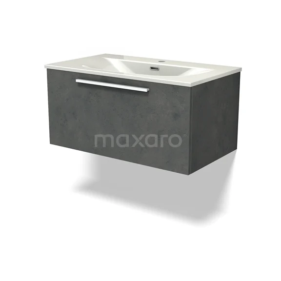 Modulo Bathroom furniture with sink | 80 cm Dark grey concrete Flat front Ceramic 1 drawer