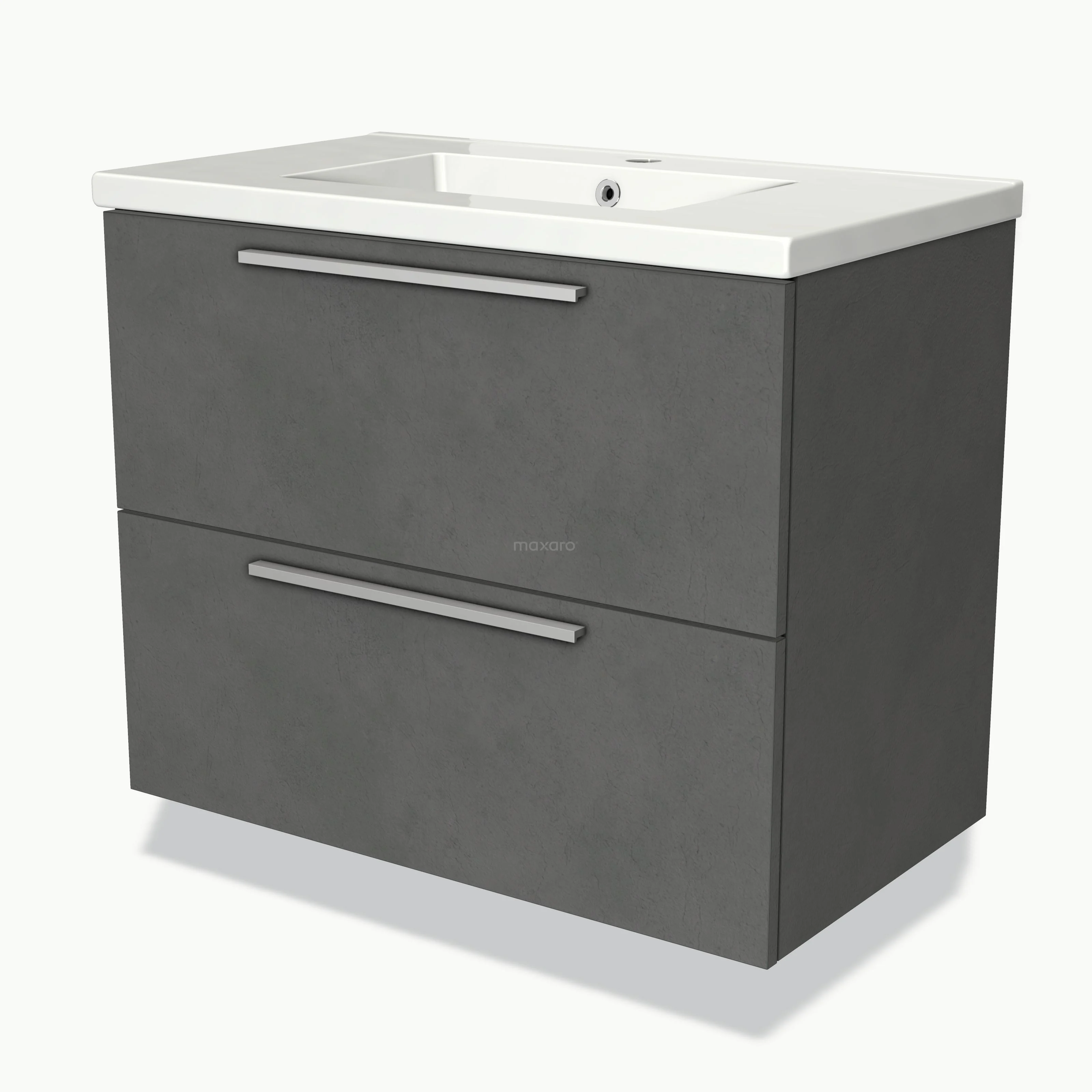 Modulo Bathroom furniture with sink | 80 cm Dark grey concrete Flat front Ceramic 2 stacked drawers under each other