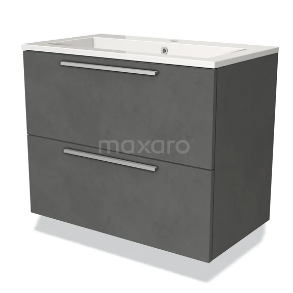 Modulo Bathroom furniture with sink | 80 cm Dark grey concrete Flat front Mineral marble 2 Stacked drawers