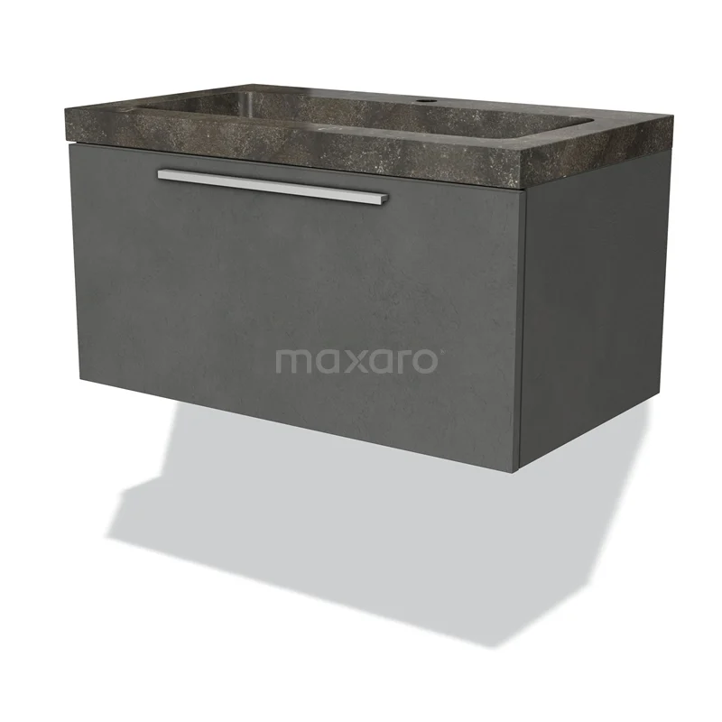 Modulo Bathroom furniture with sink | 80 cm Dark grey concrete Flat front Natural stone 1 drawer