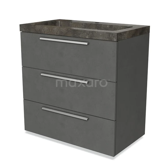 Modulo Bathroom furniture with sink | 80 cm Dark grey concrete Flat front Natural stone 3 drawers