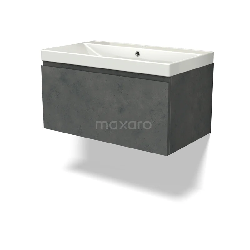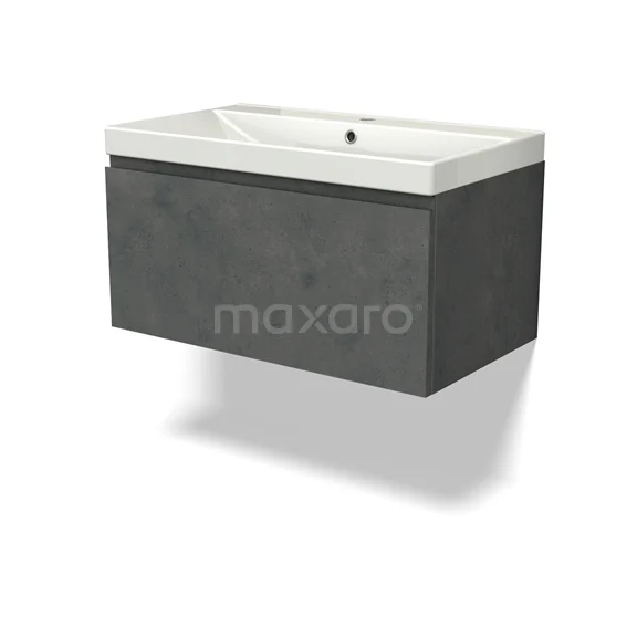 Modulo Bathroom furniture with sink | 80 cm Dark grey concrete Handle-less front Ceramic 1 drawer