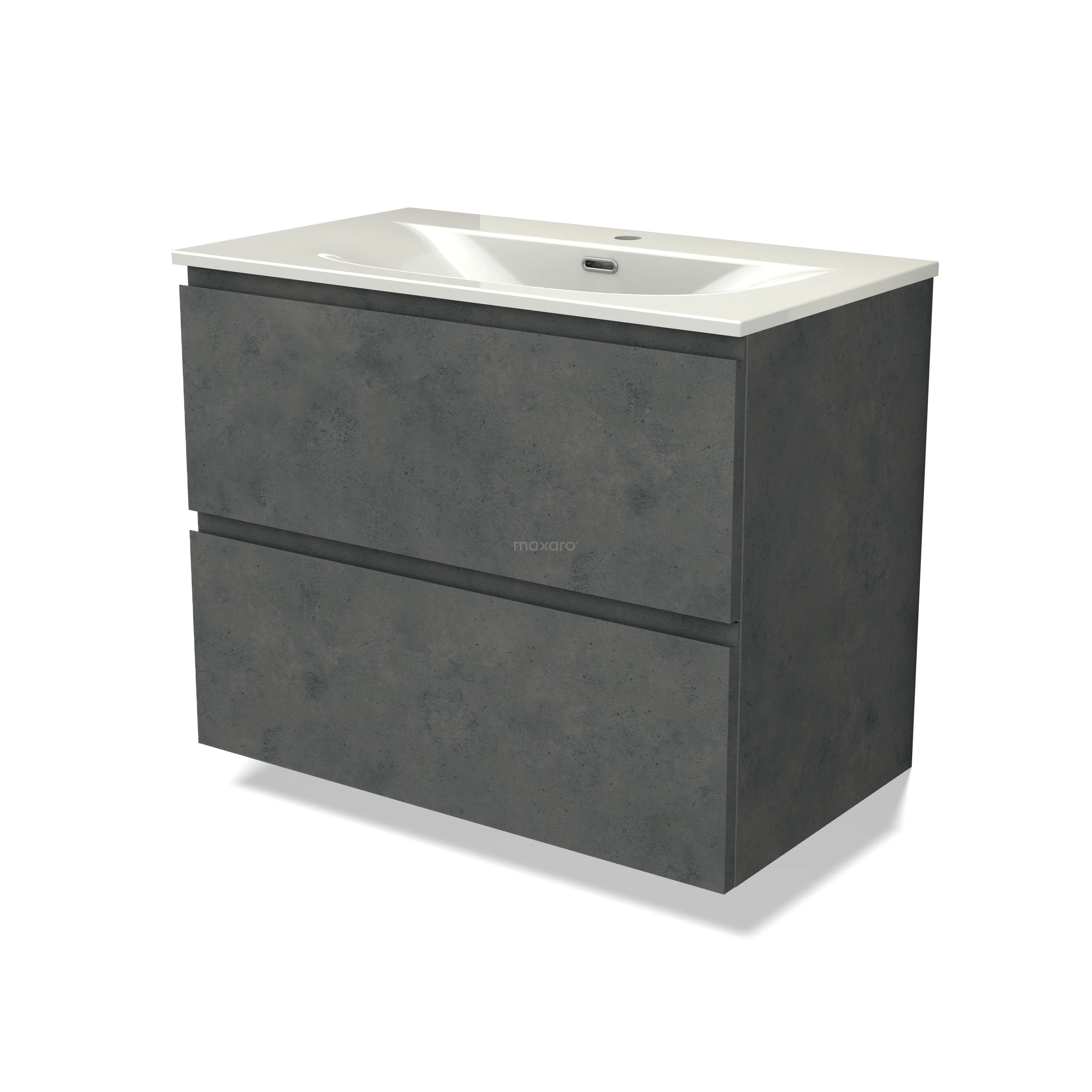 Modulo Bathroom furniture with sink | 80 cm Dark grey concrete Handle-less front Ceramic 2 Stacked drawers