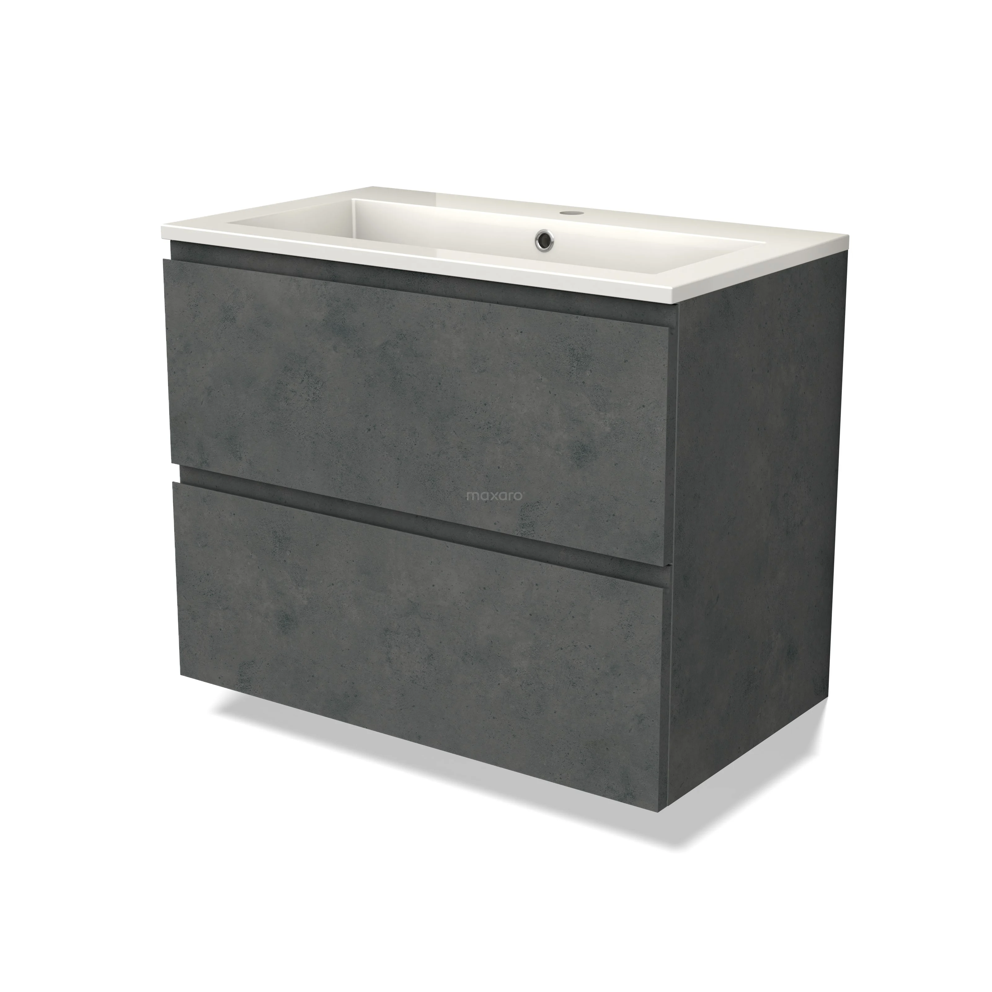 Modulo Bathroom furniture with sink | 80 cm Dark grey concrete Handle-less front Mineral marble 2 Stacked drawers