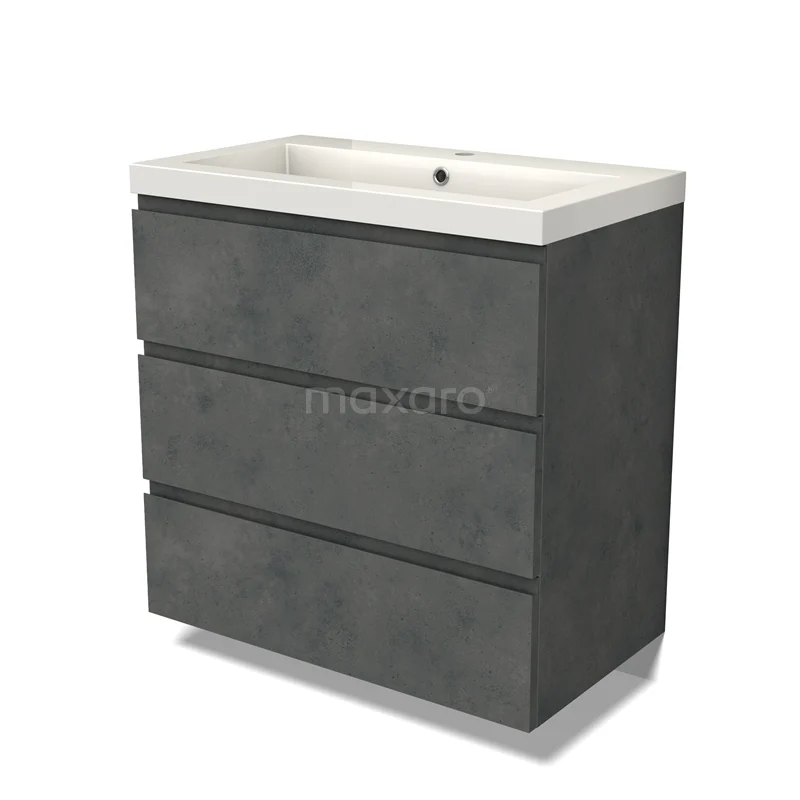 Modulo Bathroom furniture with sink | 80 cm Dark grey concrete Handle-less front Mineral marble 3 drawers