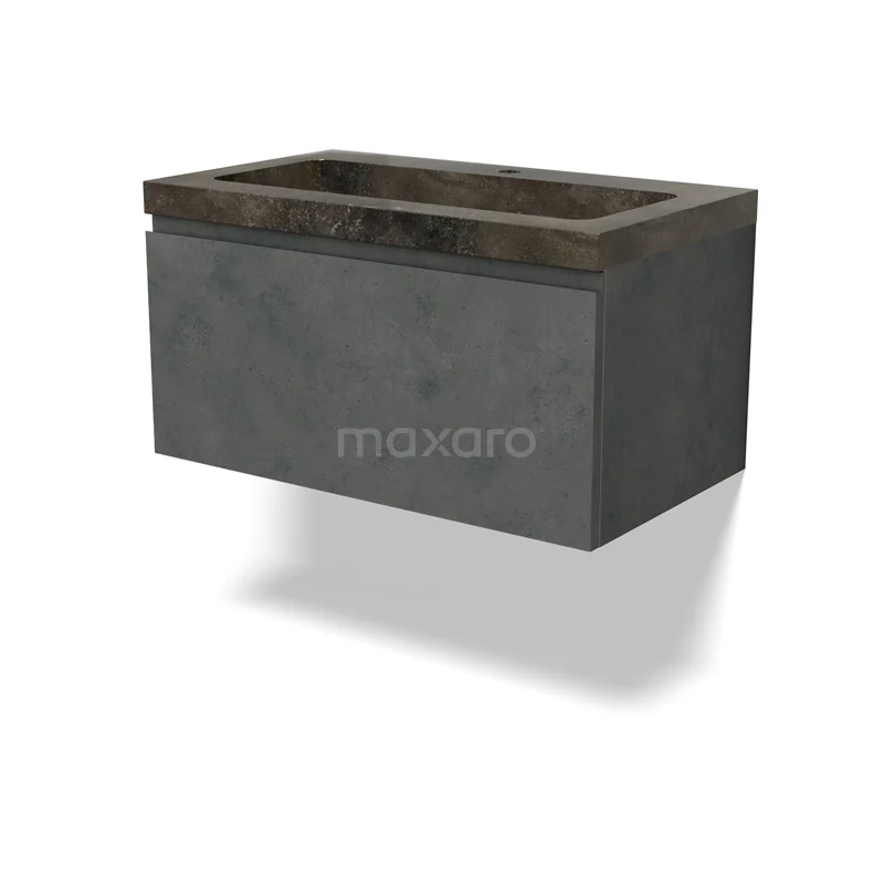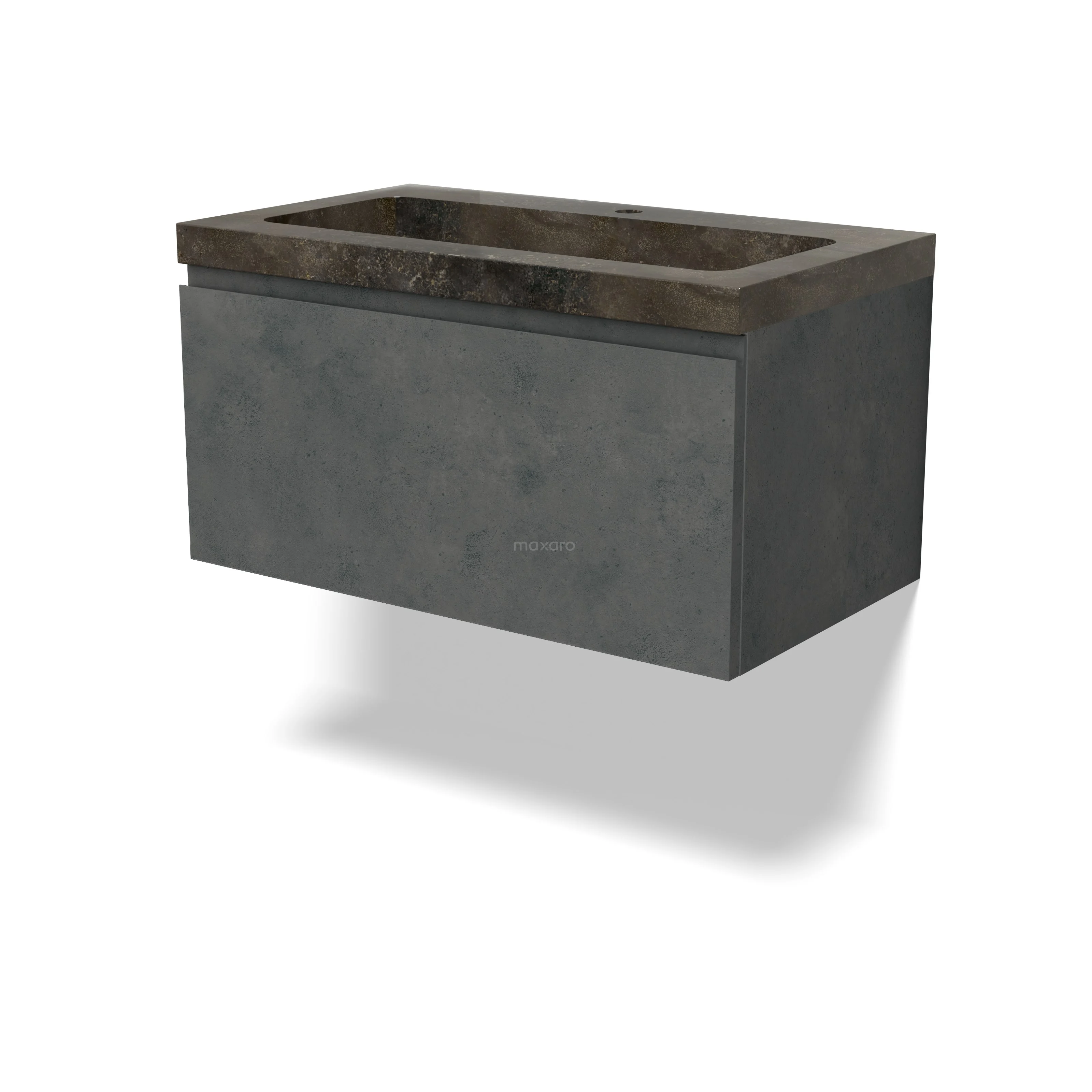 Modulo Bathroom furniture with sink | 80 cm Dark grey concrete Handle-less front Natural stone 1 drawer
