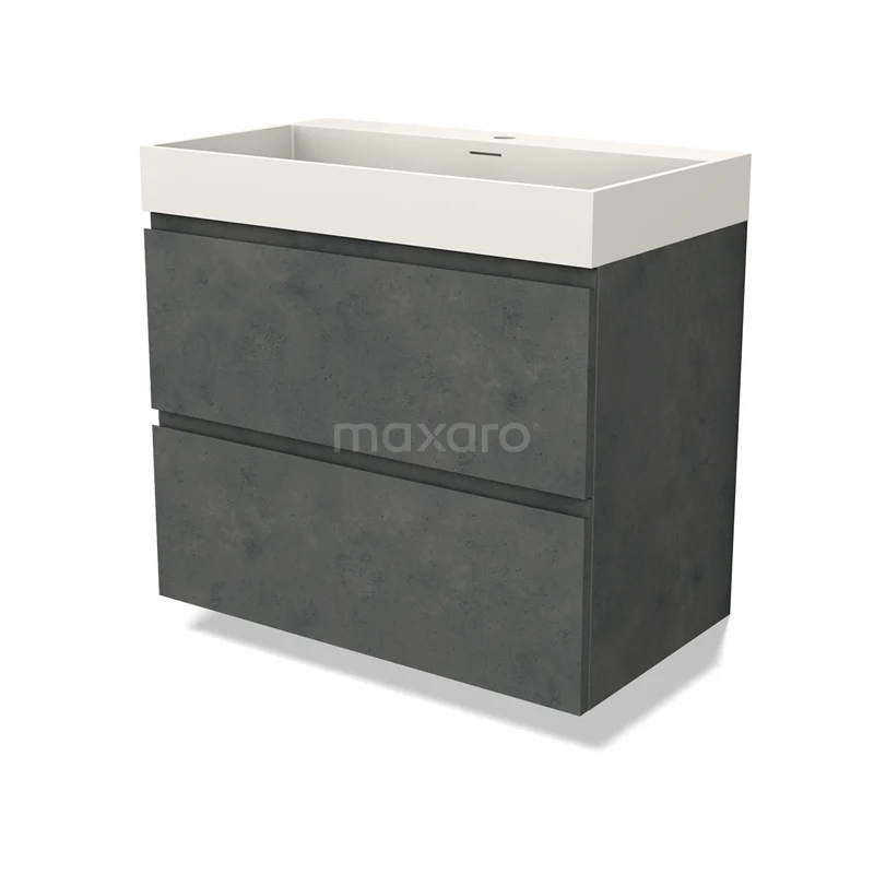 Modulo Bathroom furniture with sink | 80 cm Dark grey concrete Handle-less front Solid surface 2 Stacked drawers