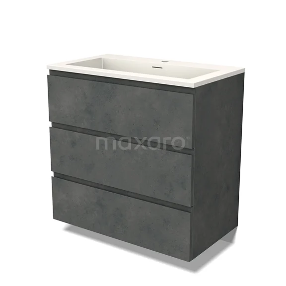 Modulo Bathroom furniture with sink | 80 cm Dark grey concrete Handle-less front Solid surface 3 drawers