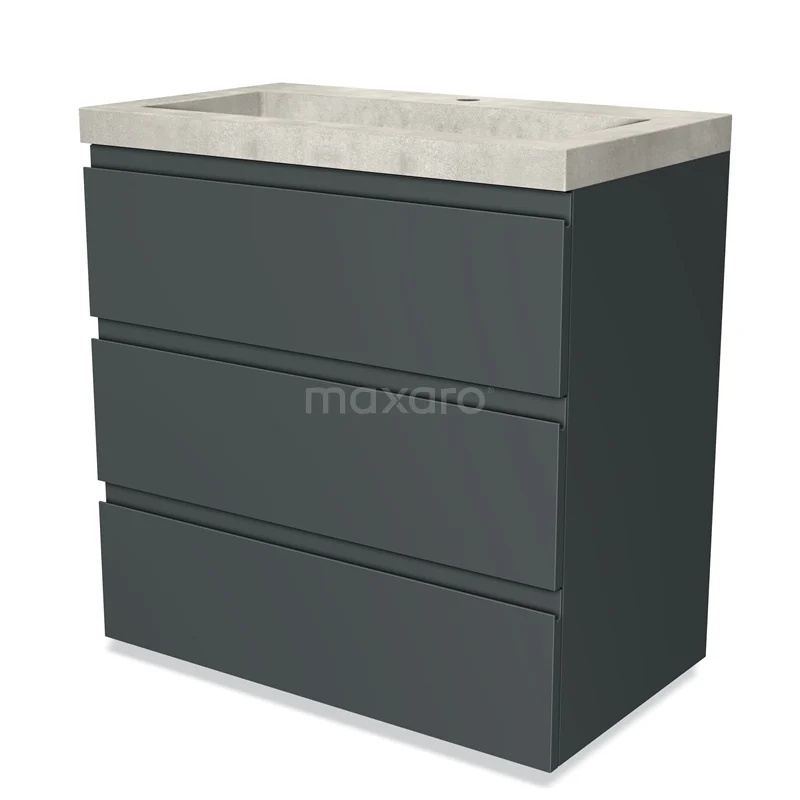 Modulo Bathroom furniture with sink | 80 cm Dark grey Handle-less front Concrete 3 drawers