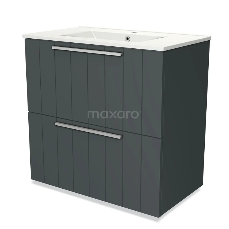 Modulo Bathroom furniture with sink | 80 cm Dark grey Slat front Ceramic 2 stacked drawers under each other