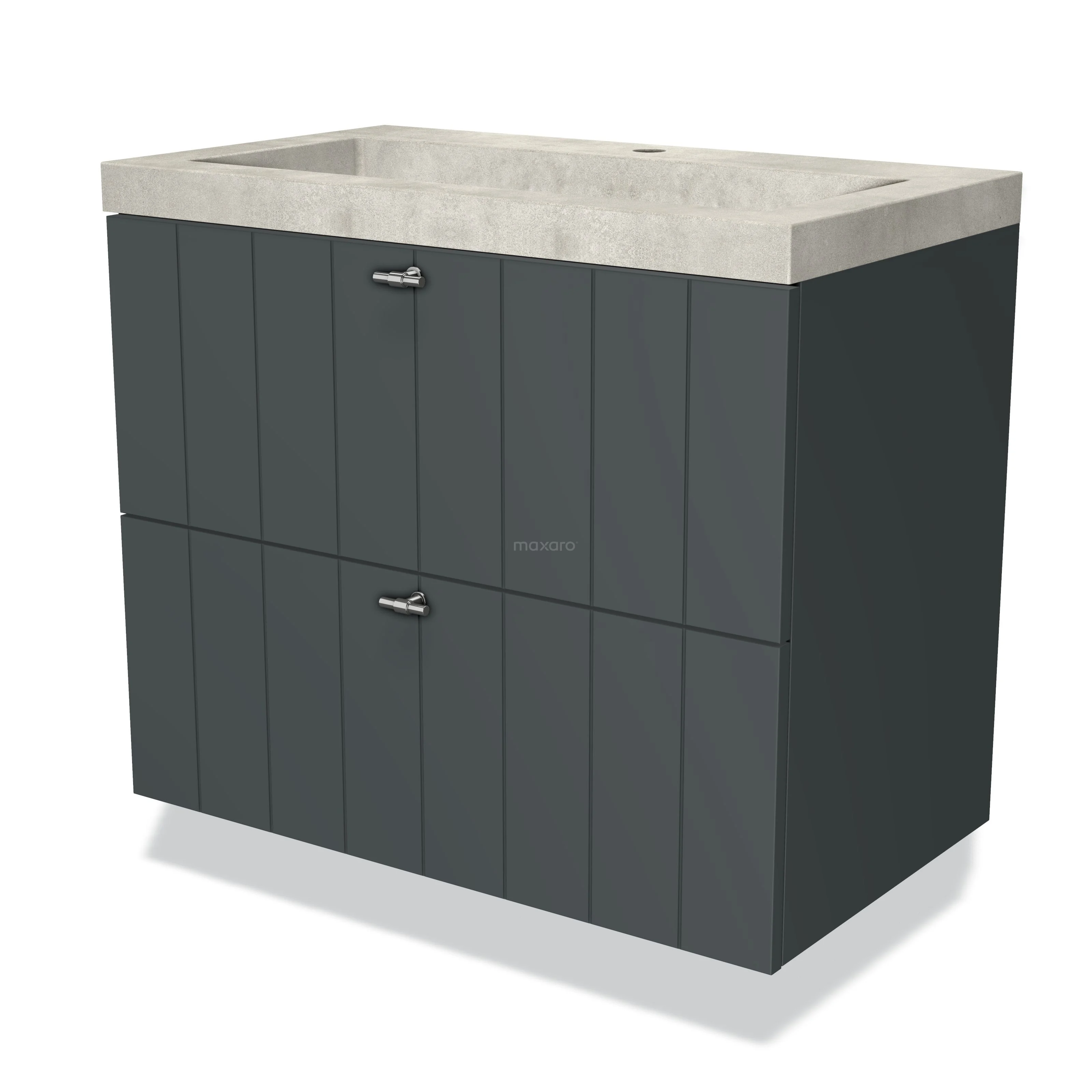 Modulo Bathroom furniture with sink | 80 cm Dark grey Slat front Concrete 2 Stacked drawers