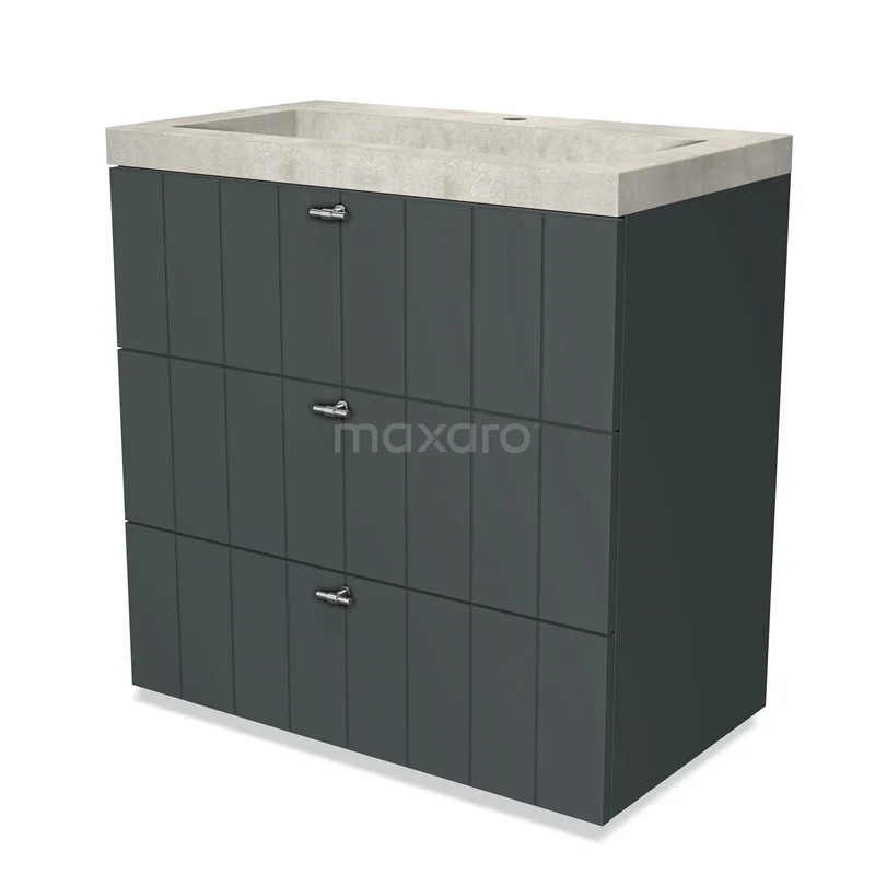 Modulo Bathroom furniture with sink | 80 cm Dark grey Slat front Concrete 3 drawers