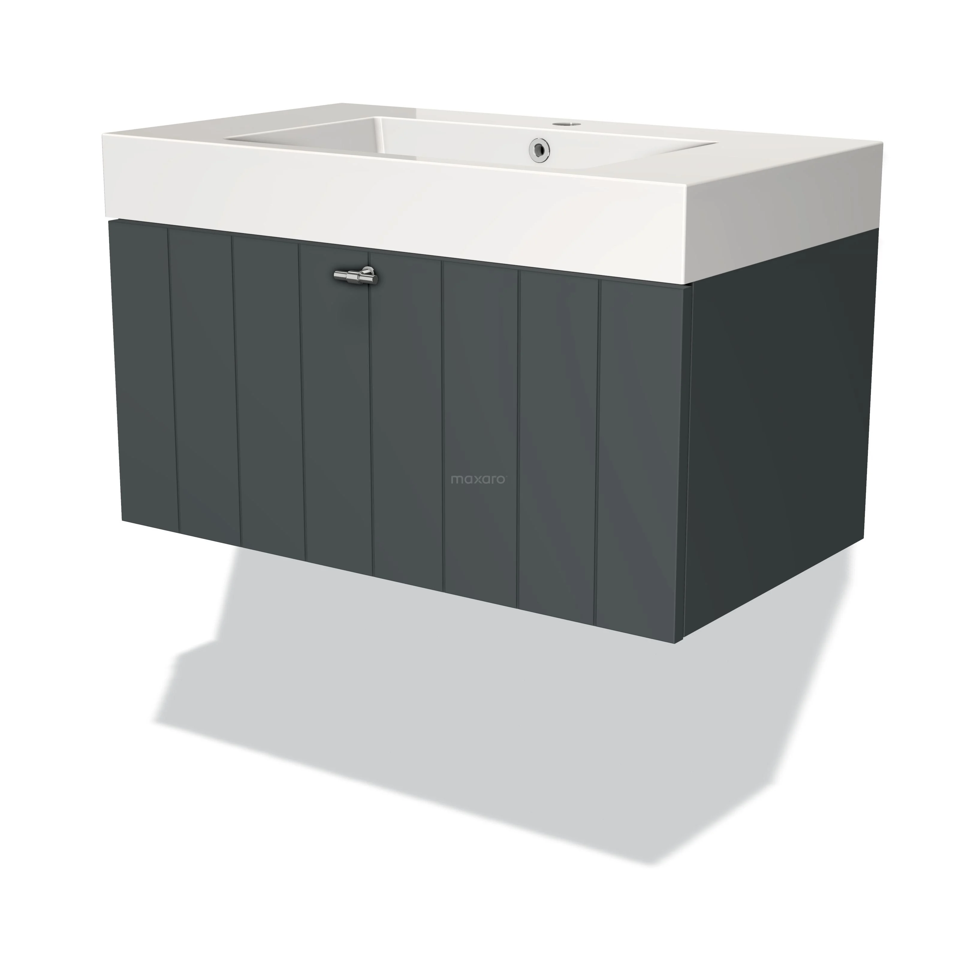 Modulo Bathroom furniture with sink | 80 cm Dark grey Slat front Mineral marble 1 drawer