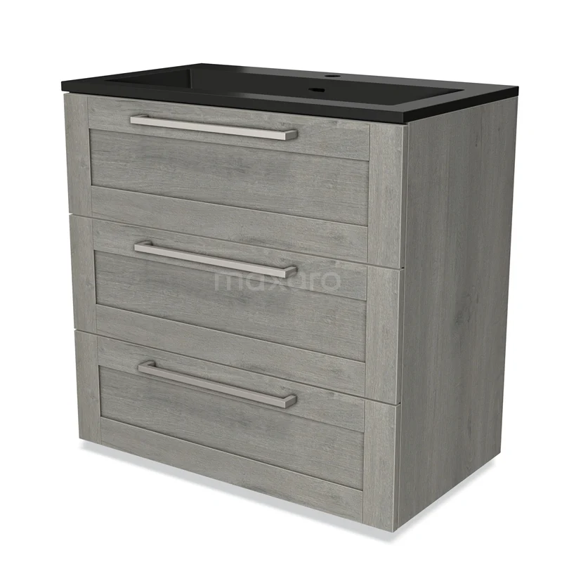 Modulo Bathroom furniture with sink | 80 cm Grey oak Bordered front Quartz 3 drawers