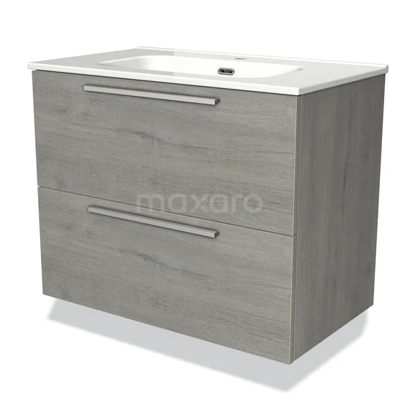 Modulo Bathroom furniture with sink | 80 cm Grey oak Flat front Ceramic 2 Stacked drawers