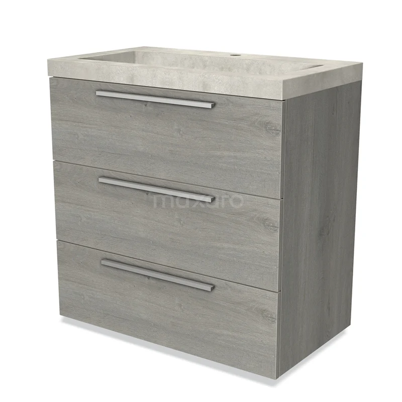 Modulo Bathroom furniture with sink | 80 cm Grey oak Flat front Concrete 3 drawers