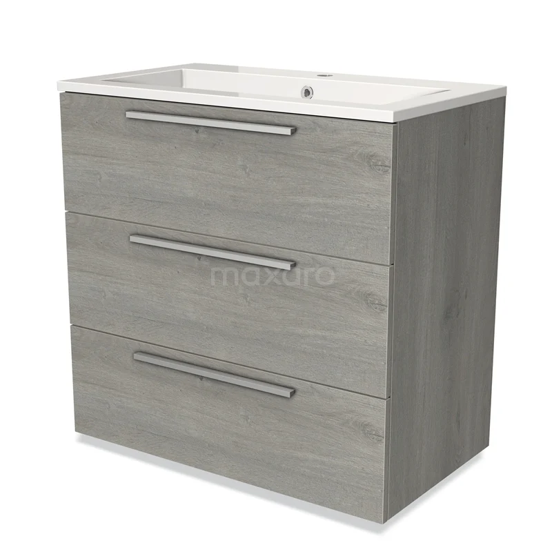 Modulo Bathroom furniture with sink | 80 cm Grey oak Flat front Mineral marble 3 drawers
