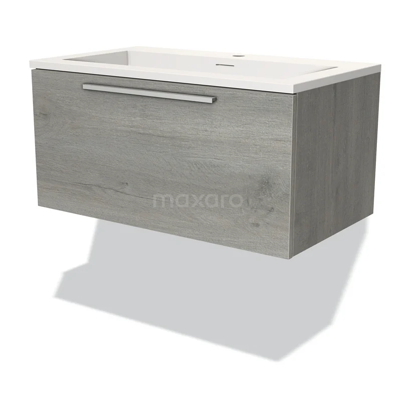 Modulo Bathroom furniture with sink | 80 cm Grey oak Flat front Solid surface 1 drawer