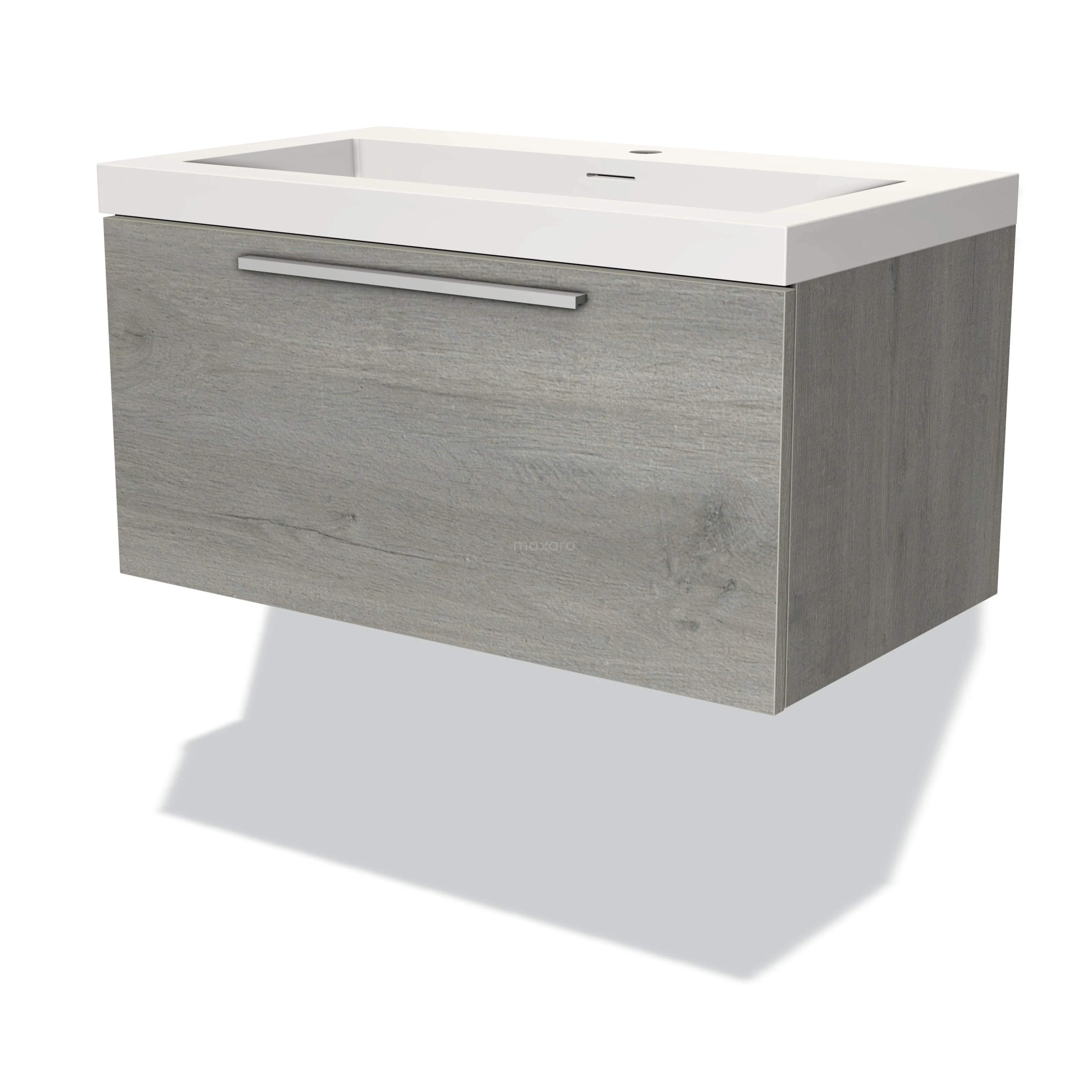 Modulo Bathroom furniture with sink | 80 cm Grey oak Flat front Solid surface 1 drawer